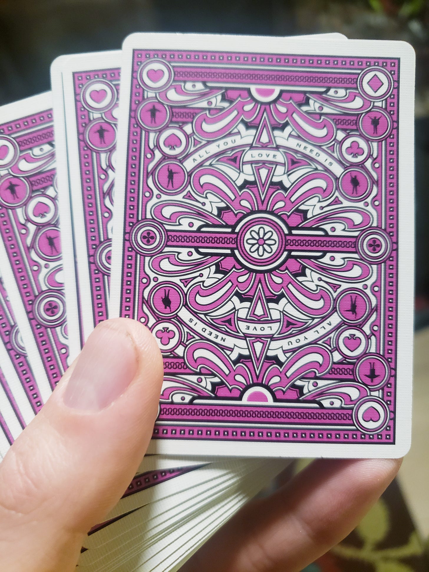 A deck of cards presents endless possibility for game design. Particularly when you combine the oracular excellence of the cards with the flexibility of a freeform narrative. For me, cards feel like such a rich and tangible way to interact with the game and to physically represent narrative elements. Cards are an excellent prop that come loaded with meaning that you can easily use to fuel your creativity.
